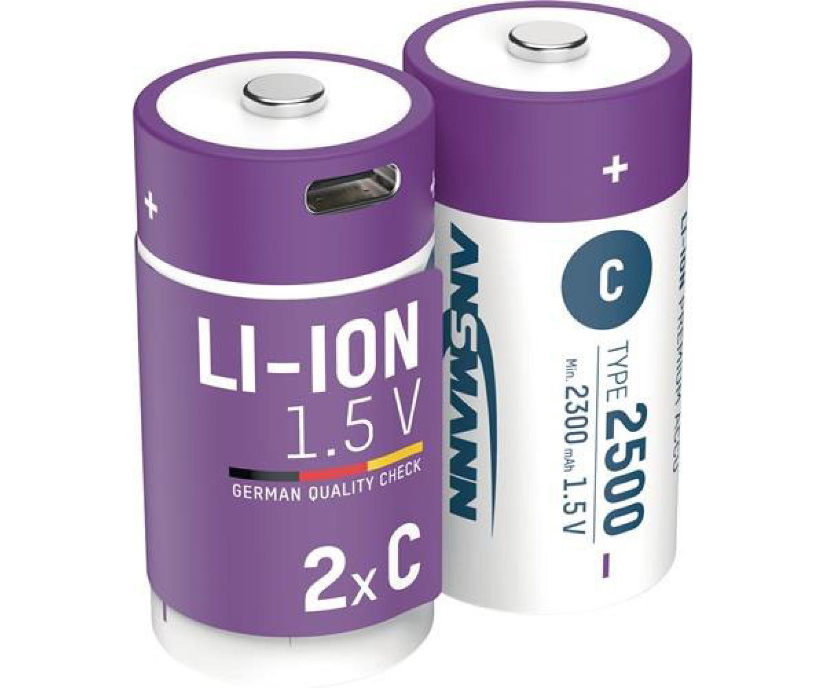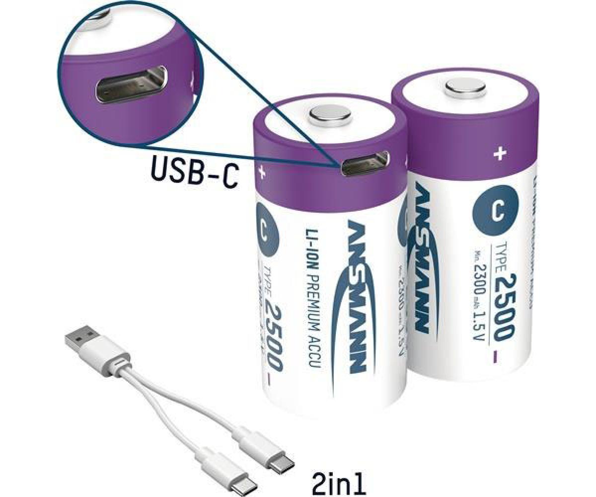 2x Baby C Li-Ion Akku 2500 mAh, 2 in 1 USB-C Ladekabel