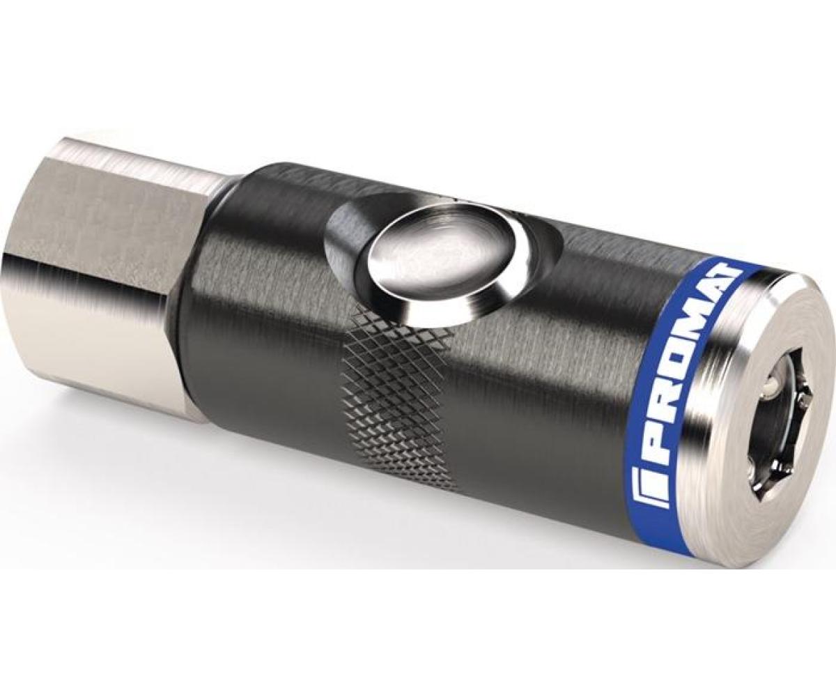 hochwertige, robuste und langlebige, mit einer Hand bedienbare Schnellverschlusskupplung in Sicherheitsausführung mit hohen Durchflusswerten · das Entkuppeln erfolgt durch zweimaliges Drücken des Druckknopfes · beim ersten Drücken erfolgt die Entlüftung der Kupplung, der Stecker bleibt in der Kupplung gesichert · beim zweiten Drücken wird der Stecker sicher gelöst · somit wird der berüchtigte "Peitschenhiebeffekt" verhindert und das Risiko der Verletzung des Bedienpersonals praktisch ausgeschlossen · entspricht dem ISO-Standard DIN EN ISO 4414
