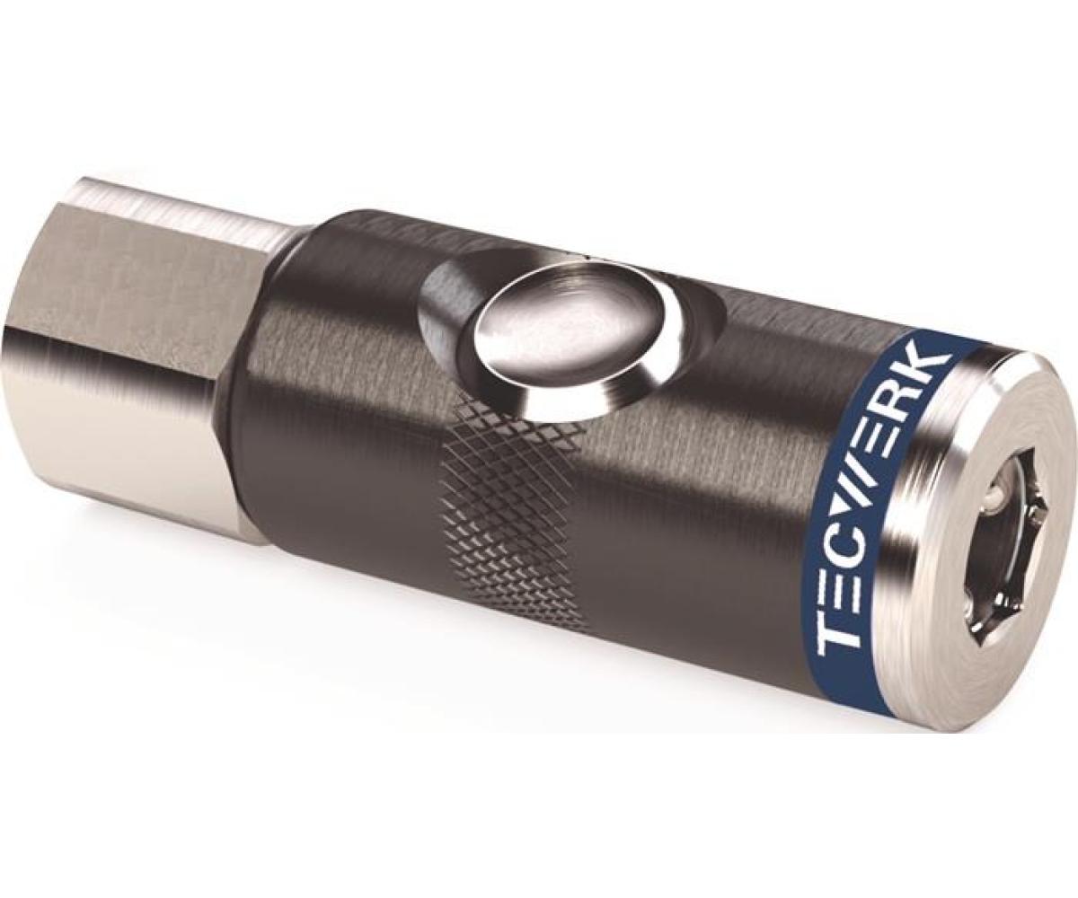 hochwertige, robuste und langlebige, mit einer Hand bedienbare Schnellverschlusskupplung in Sicherheitsausführung mit hohen Durchflusswerten · das Entkuppeln erfolgt durch zweimaliges Drücken des Druckknopfes · beim ersten Drücken erfolgt die Entlüftung der Kupplung, der Stecker bleibt in der Kupplung gesichert · beim zweiten Drücken wird der Stecker sicher gelöst · somit wird der berüchtigte "Peitschenhiebeffekt" verhindert und das Risiko der Verletzung des Bedienpersonals praktisch ausgeschlossen · entspricht dem ISO-Standard DIN EN ISO 4414