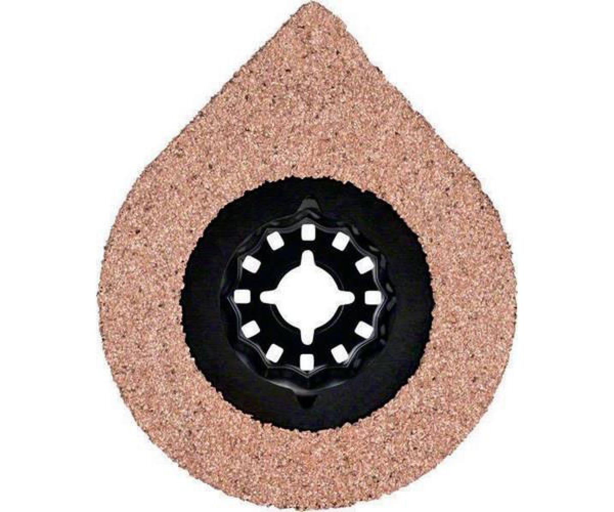Mehrzwecknutzung in Fliesen · mit seinem hochwertigen Carbide-Korn kann der Mörtel um eine Fliese mühelos herausgeschnitten werden und erreicht mit seiner Spitze selbst schwer zugängliche Ecken · auch als Schleifplatte verwendbar, um den alten Mörtel hinter der Fliese zu entfernen · Starlock Aufnahme für maximale Kraftübertragung