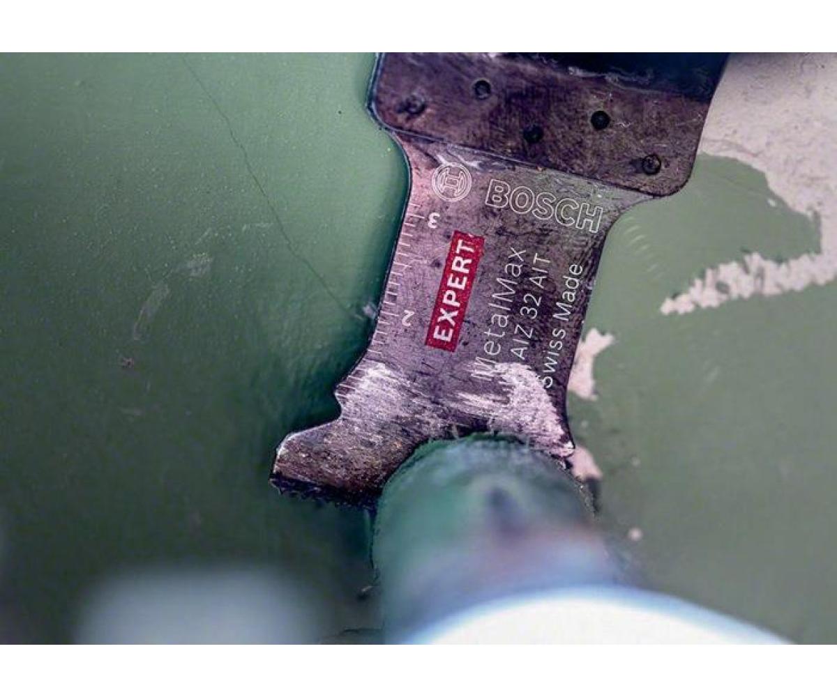 Herausragende Lebensdauer in harten und zähen Metallen! Zusätzliche Beschichtung macht Carbide härter Wenn gehärtete Schrauben rosten oder auf andere Weise stecken bleiben · besteht die einzige Option darin · sie flach an der Oberfläche abzuschneiden. Der EXPERT MetalMax macht auch in gehärtetem Metall einen perfekten bündigen Schnitt. Mit seiner herausragenden Langlebigkeit ist es das perfekte Zubehör für Handwerker · die harte Materialien mit einem Multifunktionswerkzeug schneiden möchten. Du hast gesehen · wie mühelos das Multifunktionswerkzeug in und durch Holz sägen kann: Mit dem Bosch EXPERT MetalMax Blatt für Multifunktionswerkzeuge kann Metall genauso zersägt werden. Es sägt sogar mühelos gehärtete Fensterschrauben und Armierungen. Überragende Lebensdauer dank Bosch Carbide Technology