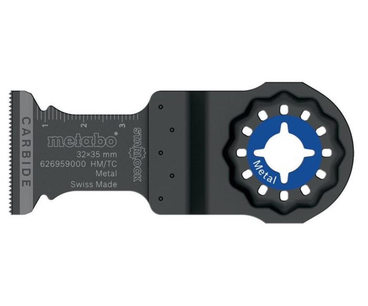 Weitere technische Eigenschaften · Breite: 32mm · Länge: 35mm · Material: HM · Materialeignung: Metall/rostfreier Stahl/gehärtete Schrauben und Nägel · Verkaufseinheit: 1 · Zahnteilung: 1,3 mm/20 TPI · Tauchsägeblatt Starlock L · .35mm B.32mm HM Zahnt. 1, · 3mm/20TPI 1 St. Metabo ·