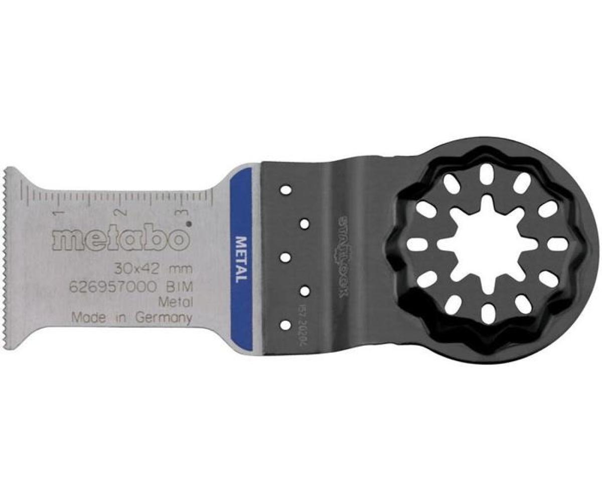 Weitere technische Eigenschaften · Breite: 30mm · Länge: 42mm · Material: BiM · Materialeignung: Kupferprofile/Aluminiumprofile/NE-Metall beschichtete Werkstoffe/Nägel · Verkaufseinheit: 1 · Zahnteilung: 1,2 mm/20 TPI · Tauchsägeblatt Starlock L · .45mm B.32mm BiM Zahnt. 1 · ,3mm/20TPI 1 St. Metabo ·