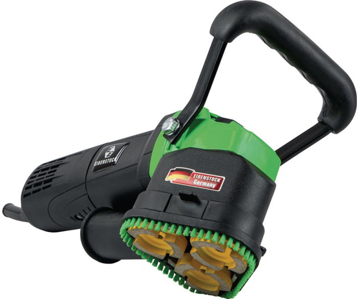 Schleifen in Ecken, Winkeln und kleinen Flächen z.B. Fensterlaibungen, Nischen, unter Heizkörpern · ideal für Treppen- und Fliesensanierungen · Schleifen bis direkt an die Kante (bei entferntem Bürstenkranz) · Beton, Estrich, Fliesenkleber, Putze, Farbe, Beschichtungen, Teppichkleber · Sanftanlauf, Drehzahlregelung und -konstanthaltung · abnehmbarer Bürstenkranz