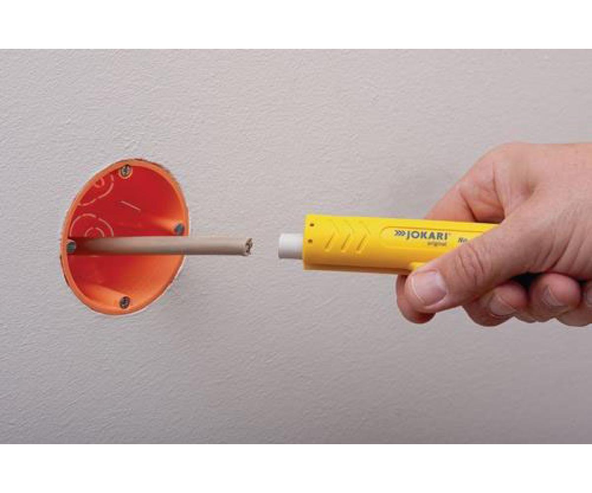 speziell für das Entmanteln von Kabeln in Dosen · für alle gängigen Rundkabel · NYM-Kabel 3 x 1,5 mm² bis 5 x 2,5 mm² = Feuchtraumkabel · Klingen Titan-Nitrid beschichtet, dadurch höhere Schnittgeschwindigkeit, geringerer Verschleiß, höhere Standzeit · zum Abmanteln aller gängigen Rundkabel · Griffart: Polyamid