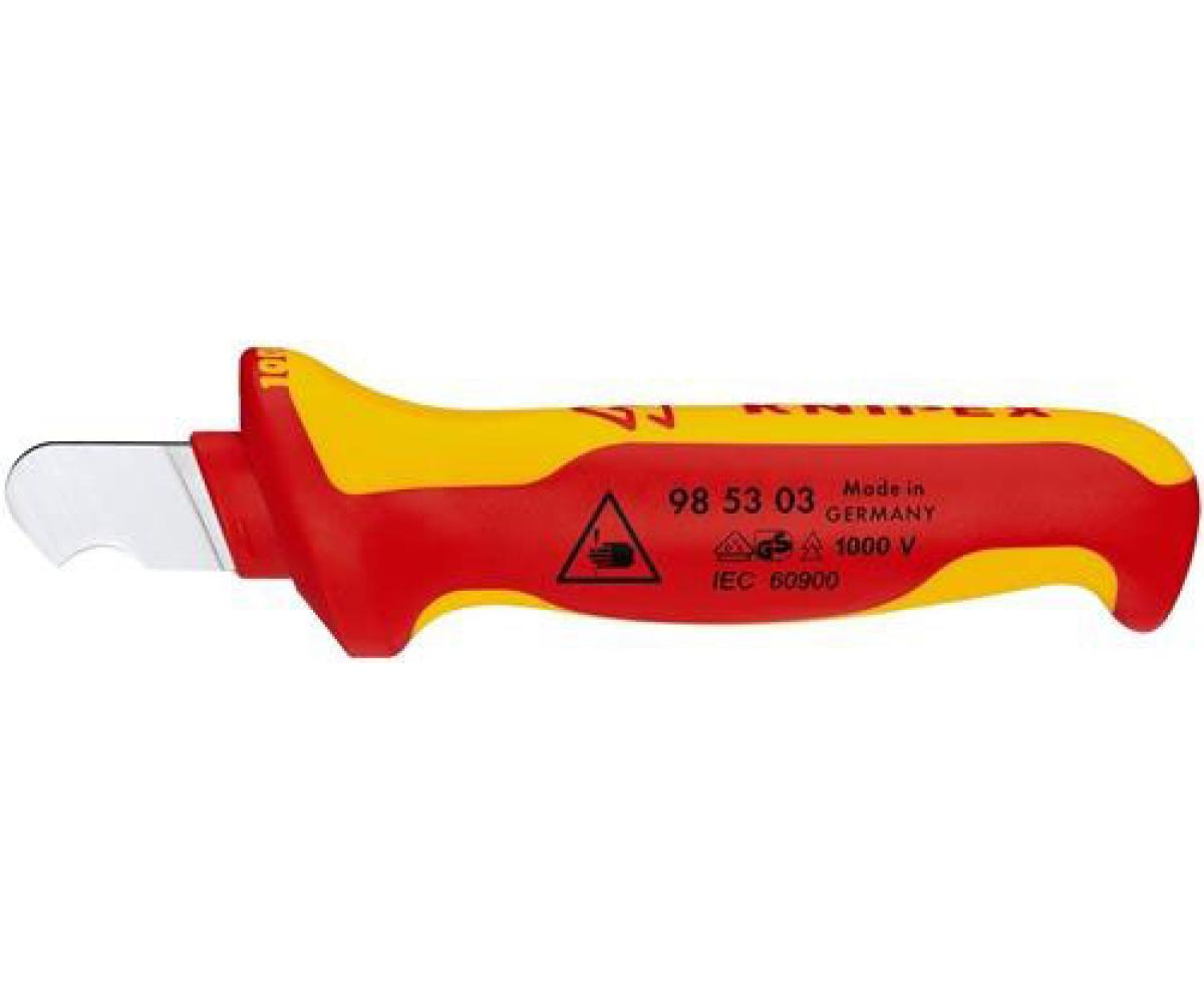 VDE-isoliert bis 1000 V · gefertigt gem. DIN EN/IEC 60900, stückgeprüft · stabile, feststehende Hakenklinge und transparenter Schutzkappe · Klinge: Spezial-Werkzeugstahl, ölgehärtet mit Mehrkomponentengriff