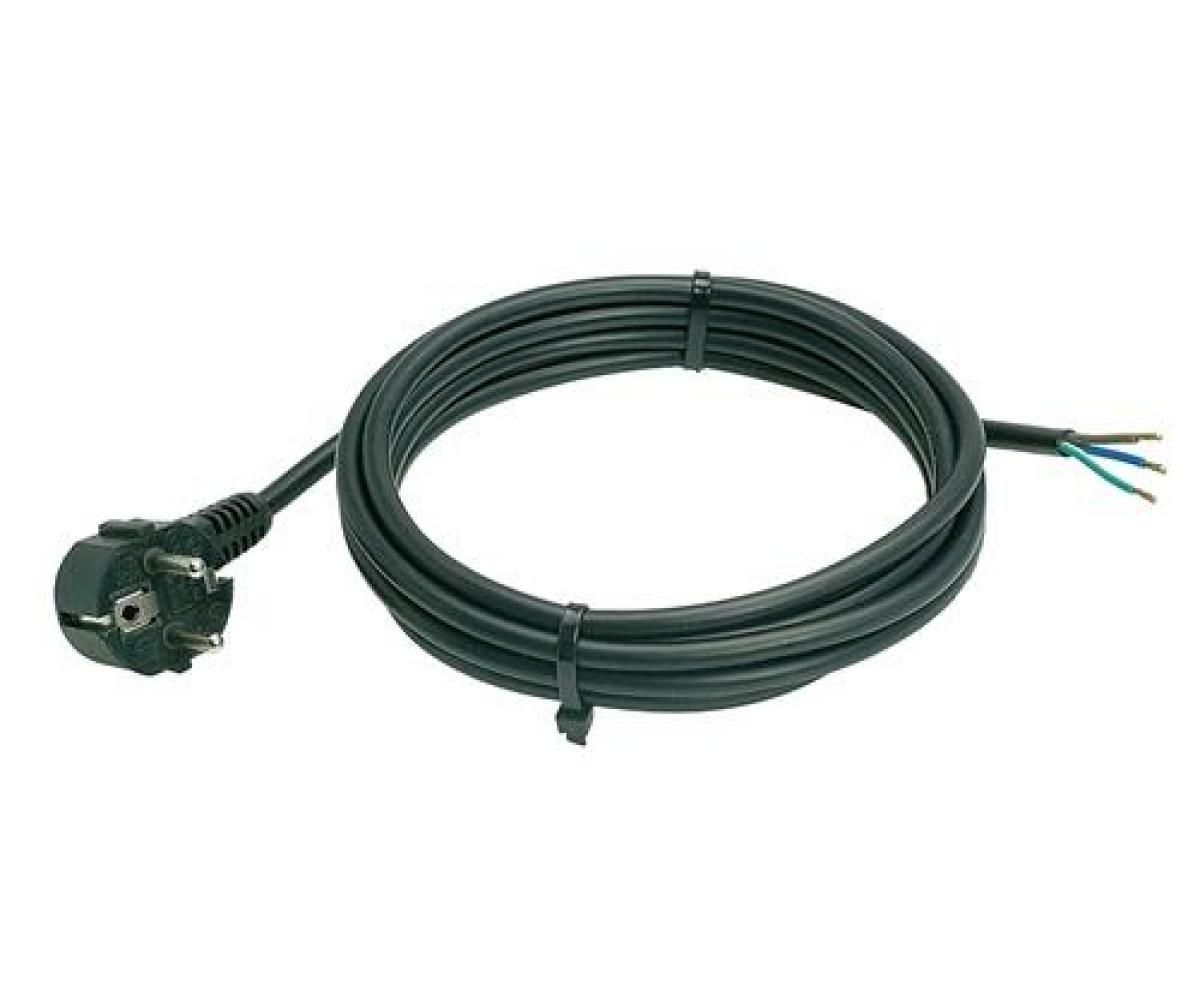 PVC-Anschlußleitung · Winkel · angespritzter Schutzkontaktwinkelstecker · ca. 30mm abgemantelt · Adern mit Aderendhülsen · im Folienbeutel · P20 · geprüft nach VDE 0620-1, VDE 0285-525-2-11