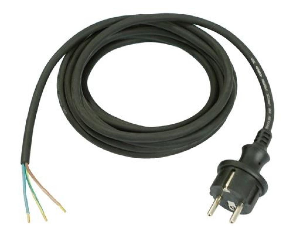Gummi-Anschlussleitung · angespritzter Konturenstecker · ca. 50mm abgemantelt, Adern mit Aderendhülsen · im Folienbeutel · IP20 · geprüft nach VDE 0620-1, VDE 028-525-21