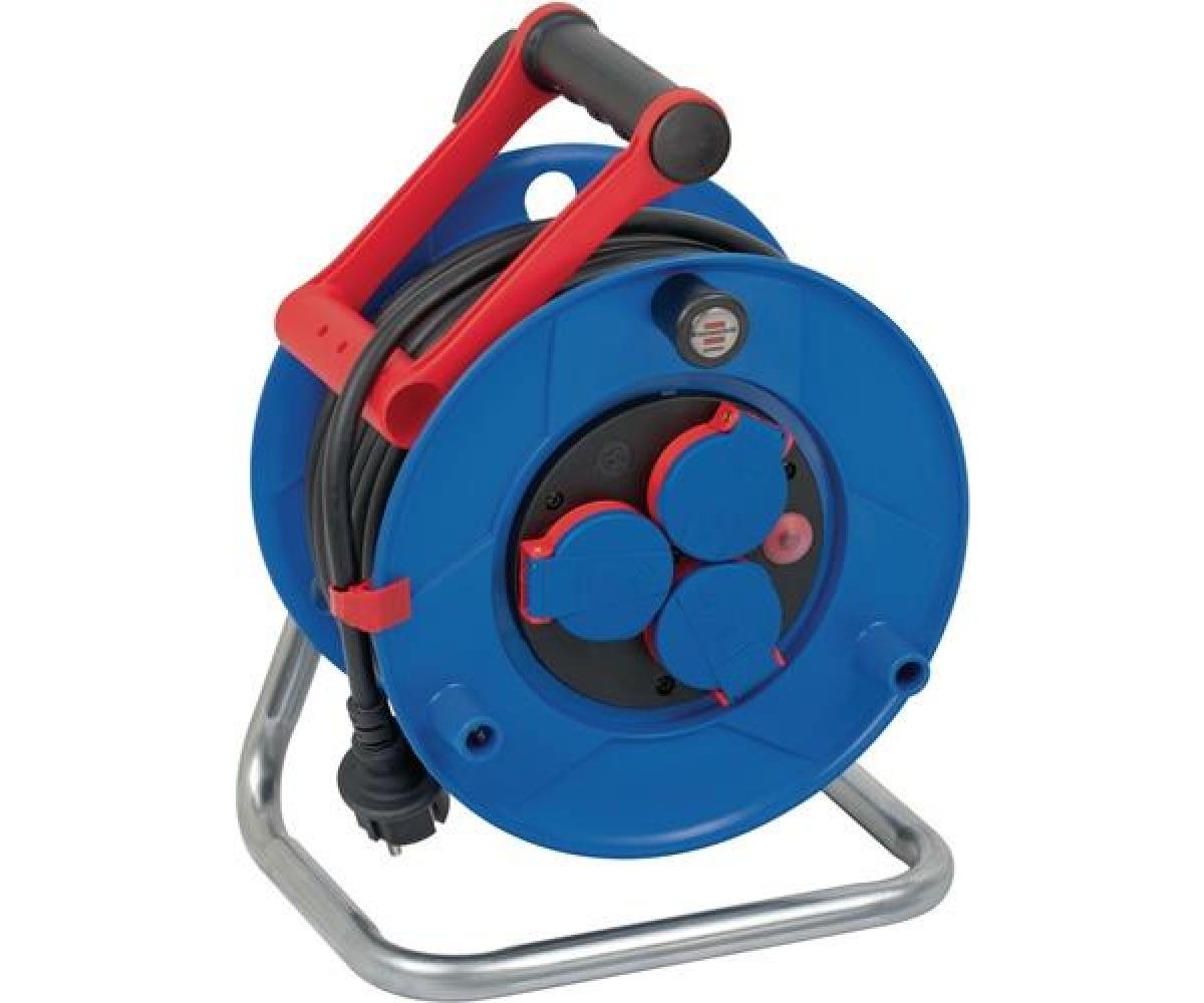 Die Garant IP44 Gewerbe-/Baustellen-Kabeltrommel mit 25m Kabellänge in der Farbe blau von Brennenstuhl überzeugt durch ihre Qualität und Sicherheit in allen Bereichen. Die Kabeltrommel eignet sich ideal für den Baustelleneinsatz und den Einsatz im Freien. Sie überzeugt außerdem durch folgende Eigenschaften Innovativer Tragegriff ?cablepilot? für die perfekte Kabelführung. Pendelt auf beiden Seiten und ermöglicht bequemes Tragen und Aufhängen RN-Kabel ist zugelassen für erschwerte Baubedingungen nach VDE 0100 Teil 704 Mit Drehgriff für komfortables Aufrollen Schutzart IP44 Kabellänge 25m Kabelbezeichnung H07RN-F 3G1,5 Kabelqualität Gummi-Neopren Kabelfarbe Schwarz Trommeldurchmesser 240mm