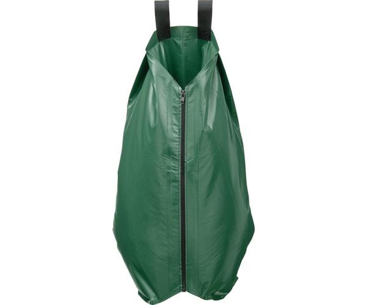 Material: PVC · grün · effiziente Langzeitbewässerung von Jungbäumen mit einem Durchmesser von bis zu 17 cm · durch Verbinden von zwei Säcken kann ein größerer Durchmesser erzielt werden· langsamer Wasseraustritt an der Unterseite sorgt für stetige Bewässerung über Stunden · mit 2 Hebeschlaufen · UV-beständig