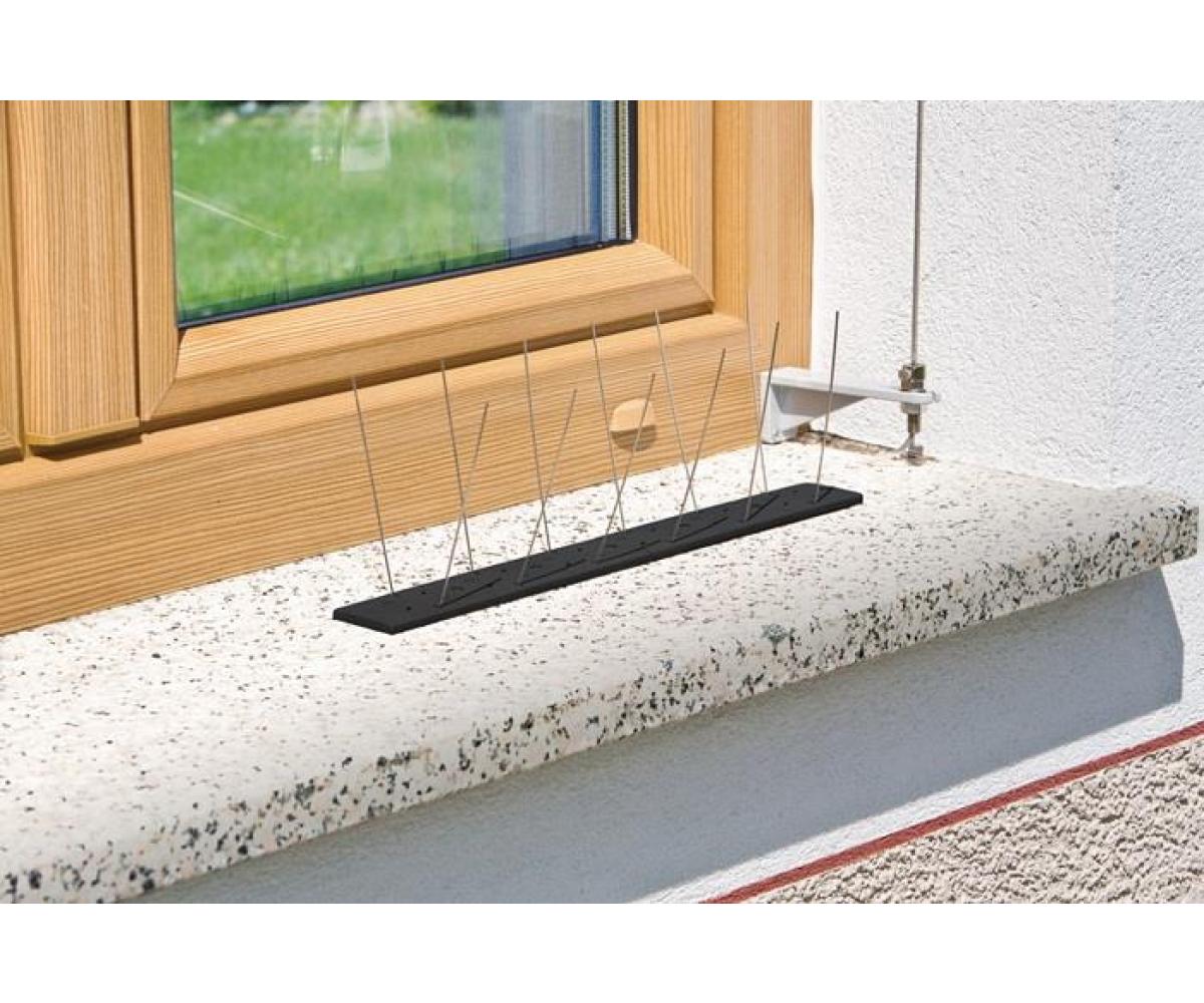 zuverlässige Abwehr von Tauben und anderen Vögeln · Basis-Set aus hochwertigem Kunststoff · individuell verlängerbar · dauerhaft einsetzbar · 36 Spikes, Höhe ca. 11 cm · bis zu 1 m Schutz durch 18 Modulplatten à 55 mm Länge · 55 x 1020 x 110 mm · inklusive Befestigungsmaterial: Schrauben und Dübel