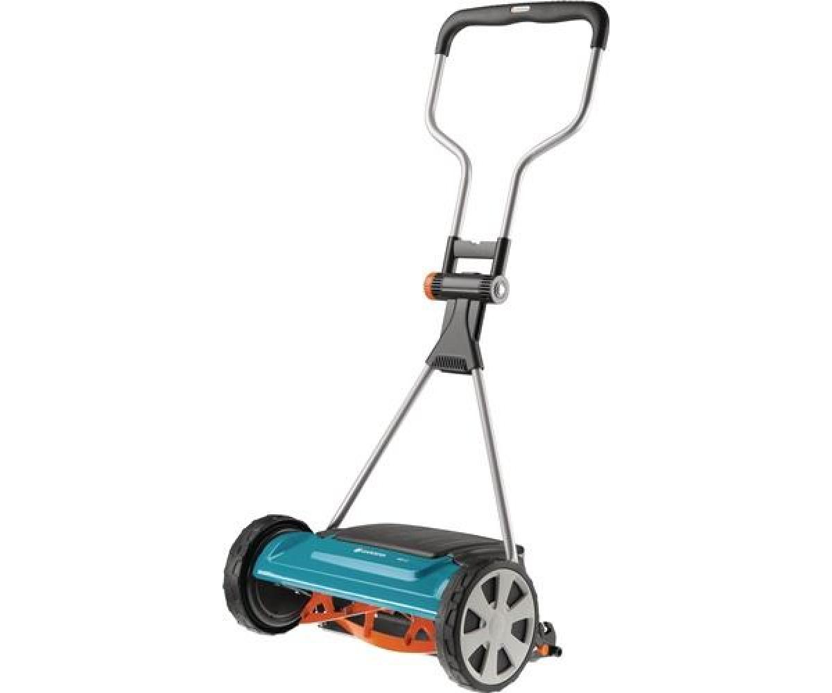 qualitativ hochwertigen Mäher für Grasflächen bis 250 m² · wird einfach über die Rasenfläche geschoben – und das geräuscharm · verfügt über ein kontaktloses Mähprinzip, wodurch sich die rotierende Messerwalze aus antihaftbeschichtetem, gehärtetem Qualitätsstahl und die feste Klinge zu keinem Zeitpunkt berühren · der sehr geringe Abstand zwischen den Klingen sorgt dafür, dass die Grashalme scharf geschnitten werden · das Schieben ist durch das angenehme Gewicht von 9,4 kg und die beiden großen Räder mit Spezialprofil entspannt und leichtgängig · Geschnittene, hochfliegende Grasteile werden durch den zusätzlichen Deflektor auf der oberen Seite des Mähers aufgehalten · die gewünschte Schnitthöhe der Grasfläche kann in vier unterschiedlichen Stufen zwischen 12 und 42 mm eingestellt werden · beim führen überzeugt der ergonomische und speziell angepasste Griffbügel · das teilbare Gestänge des Handrasenmähers wird mit dem Schnellverschluss schnell und einfach zusammengeklappt