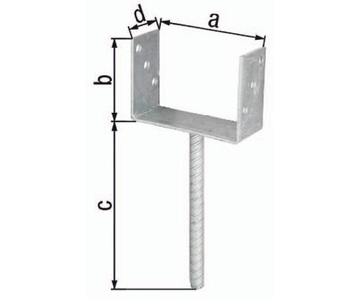 U-Pfostenträger ETA-10/0210 81x100x200x60mm TZN m.Betonanker a.Riffelstahl GAH