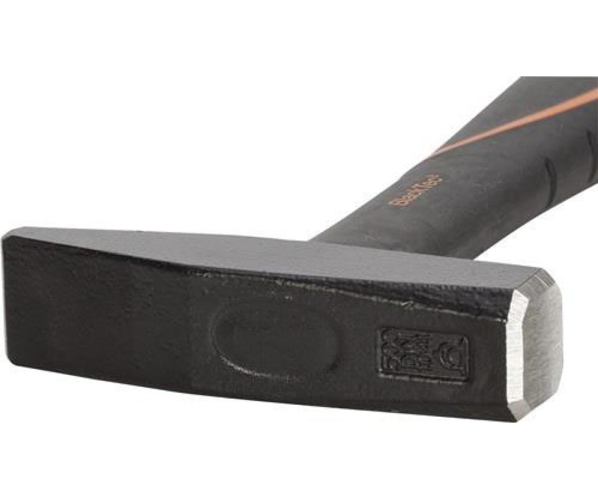 DIN 1041 · Deutsche Form · Kopf schwarz pulverlackiert, korrosionsgeschützt · aus legiertem PICARD-Spezialstahl, sorgfältig gehärtet und angelassen · Bahn und Finne geschliffen, Kanten saubergebrochen · starke Verbindung von Kopf und Stiel durch 2-Komponenten-Kleber · 3-Komponenten-Kunststoff-Stiel mit innenliegendem Fiberglaskern, schwingungsarm · gummierte Grifffläche