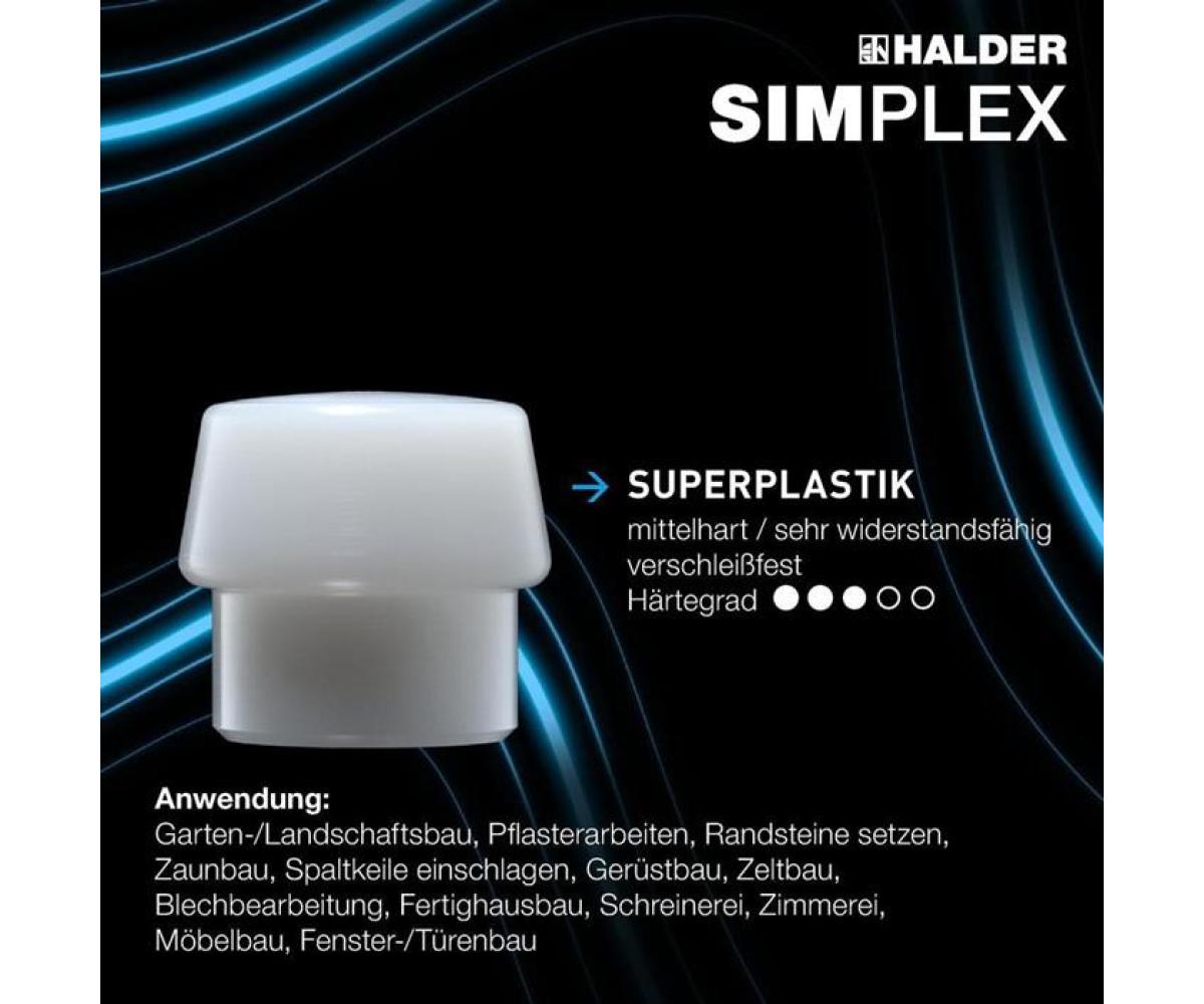 Weitere technische Eigenschaften · Stiel: Holz · Schonhammer SIMPLEX · L.280mm Kopf-D.60mm HO · Stiel:ext.kurz HALDER ·