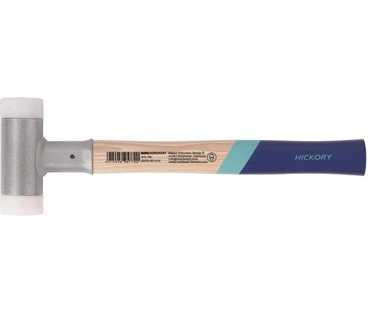 Weitere technische Eigenschaften · Stiel: Hickory · Schlag: hart · Gewicht: 543g · Kopflänge: 118mm · Länge: 355mm · Einsätze: Nylon weiß · Schonhammer L.355mm · Kopf-D.35mm Hickory · rückschlagfrei hart ·