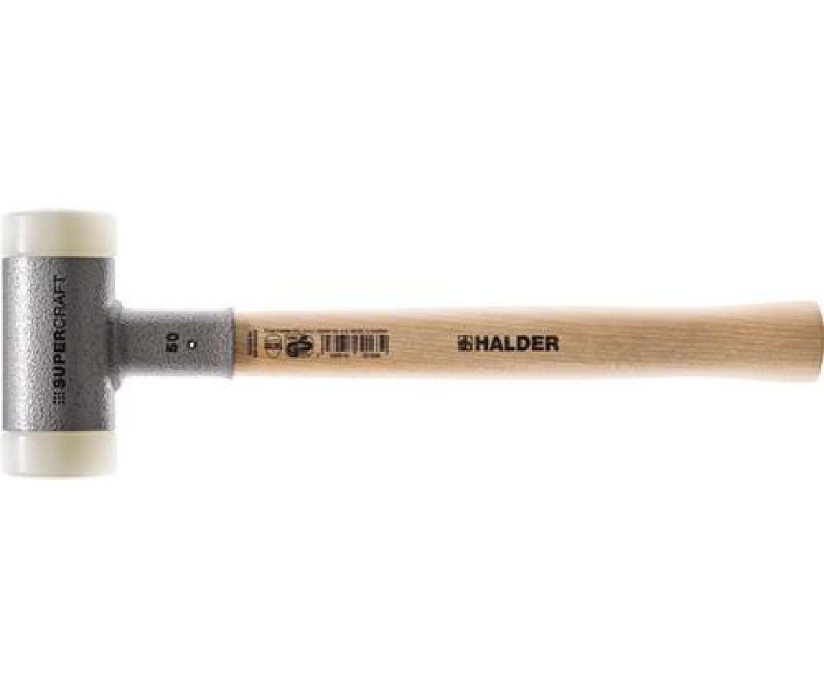 Weitere technische Eigenschaften · Länge: 300mm · Gewicht: 245g · Kopflänge: 105mm · Einsätze: Nylon weiß · Schlag: hart · Stiel: Hickory · Schonhammer SUPERCRAFT · L.300mm Kopf-D.20mm · Hickory rückschlagfrei ·
