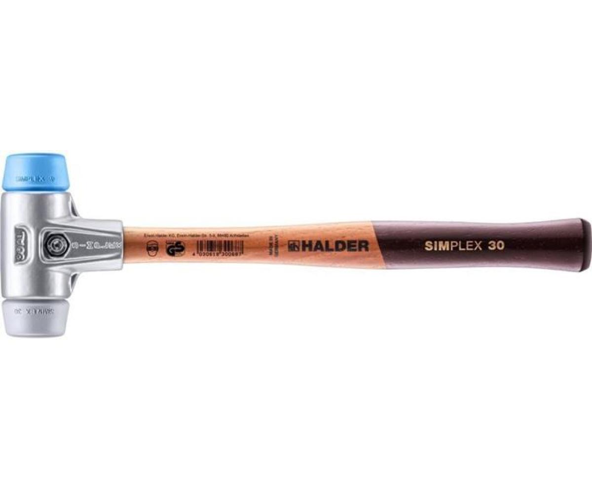 Weitere technische Eigenschaften · Stiel: Holz · Schlag: weich/mittelhart · Einsätze: TPE-soft/TPE-mid · Bezeichnung: SIMPLEX-Schonhammer · Breite: 90mm · Gehäuse: Aluminium Al · GS: ja · Härtegrad Schlageinsatz 1: 1 / 5 · Härtegrad Schlageinsatz 2: 2 / 5 · Höhe: 30mm · Konfliktmineralien frei: Frei von Konfliktmineralien: Dieses Produkt enthält keine als "Konfliktmineralien" bezeichneten Stoffe wie Tantal, Zinn, Gold oder Wolfram aus der demokratischen Republik Kongo oder angrenzender Länder. · Nennmaß: D=30 mm · Präferenzursprung: CE · Prop65: Enthält keine Proposition 65 Stoffe · REACH konform: enthält keine SVHC-Stoffe: Keine SVHC Substanzen mit mehr als 0,1% w/w enthalten – SVHC Liste Stand 11.07.2024. · RoHS-konform: RoHS-konform: Konform gemäß Richtlinie 2011/65/EU und Richtlinie 2015/863. · Schlageinsatz 1: (1): TPE-soft, blau, abriebfrei, weich · Schlageinsatz 2: (2): TPE-mid, grau, abriebfrei, mittelhart · Schonhammer SIMPLEX · L.295mm Kopf-D.30mm · weich/mittelhart HO ·