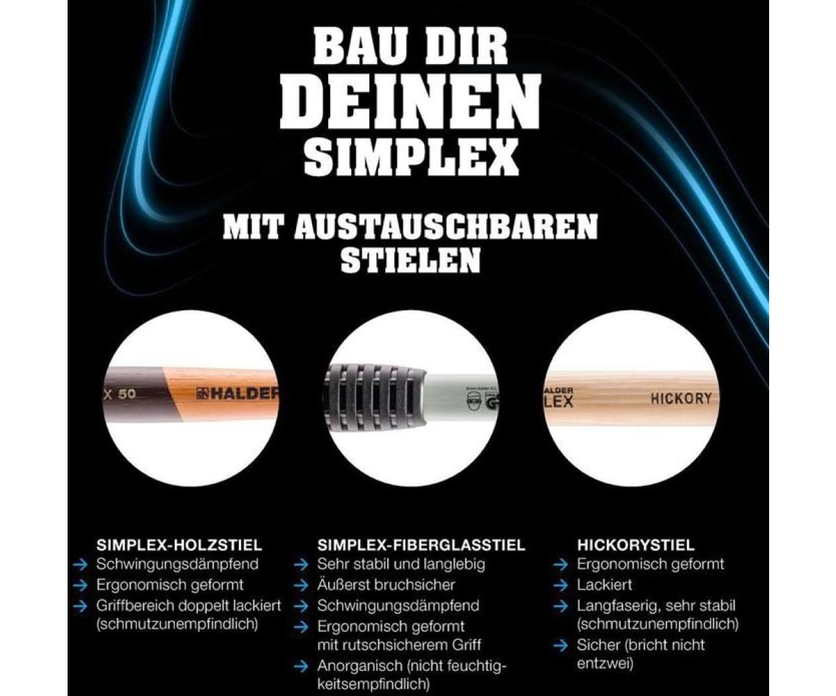 Weitere technische Eigenschaften · Stiel: Holz · Schlag: weich/mittelhart · Einsätze: TPE-soft/TPE-mid · Bezeichnung: SIMPLEX-Schonhammer · Breite: 135mm · Gehäuse: Aluminium Al · GS: ja · Härtegrad Schlageinsatz 1: 1 / 5 · Härtegrad Schlageinsatz 2: 2 / 5 · Höhe: 50mm · Konfliktmineralien frei: Frei von Konfliktmineralien: Dieses Produkt enthält keine als "Konfliktmineralien" bezeichneten Stoffe wie Tantal, Zinn, Gold oder Wolfram aus der demokratischen Republik Kongo oder angrenzender Länder. · Nennmaß: D=50 mm · Präferenzursprung: CE · Prop65: Enthält keine Proposition 65 Stoffe · REACH konform: enthält keine SVHC-Stoffe: Keine SVHC Substanzen mit mehr als 0,1% w/w enthalten – SVHC Liste Stand 11.07.2024. · RoHS-konform: RoHS-konform: Konform gemäß Richtlinie 2011/65/EU und Richtlinie 2015/863. · Schlageinsatz 1: (1): TPE-soft, blau, abriebfrei, weich · Schlageinsatz 2: (2): TPE-mid, grau, abriebfrei, mittelhart · Schonhammer SIMPLEX · L.370mm Kopf-D.50mm · weich/mittelhart HO ·