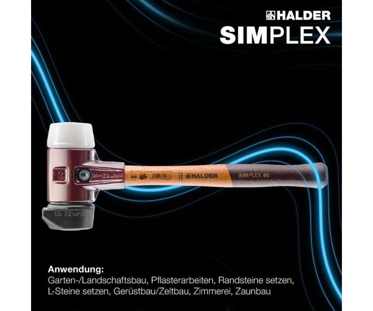 Weitere technische Eigenschaften · Stiel: Holz · Einsätze: Gummi/Superplastik, TPE-soft, TPE-mid · B: 100mm · H: 570mm · Konfliktmineralien frei: Frei von Konfliktmineralien: Dieses Produkt enthält keine als "Konfliktmineralien" bezeichneten Stoffe wie Tantal, Zinn, Gold oder Wolfram aus der demokratischen Republik Kongo oder angrenzender Länder. · L: 180mm · Schonhammer Starterkit · SIMPLEX L.180mm · Kopf-D.80mm HO ·
