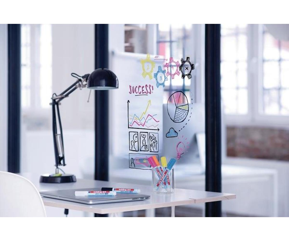 deckend und sofort einsatzbereit · einfach trocken abwischbar · Glasmarker zum Schreiben und Markieren auf den meisten Glasoberflächen und Glasboards - auch für Whiteboards geeignet