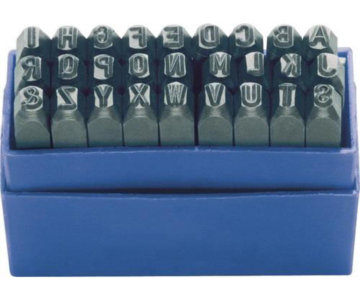 27 teilig · zur Kennzeichnung von Werkstücken mit einer Festigkeit bis zu 900 N/mm² (27 HRC) · Härte an der Gravur: 58-61 HRC · mit Sichtgravur auf jedem Stempel · maschinengraviert · Schriftbild nach DIN 1451 · aus Werkzeugstahl, in seidenglanzmattierter Ausführung · in Kunststoffbox