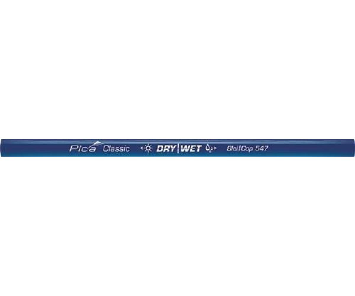 Wet & Dry · beidseitig anspitzbar Mine: 1/2 Kopiermine für nasses Holz, 1/2 Zimmermanns-Mine Graphit 2H für trockenes Holz · ungespitzt · oval · blau lackiert