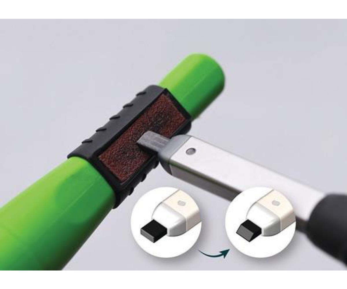 automatischer Minenvorschub auf Knopfdruck · nachfüllbar · für Rechteck-Minen 2 x 5 mm Querschnitt · kein Anspitzen notwendig · integrierter Taschenclip · im Köcherschoner · integrierter Minenschärfer · für feinste Markierungen - durch viele verschiedene Minensets vielseitig einsetzbar (Sonderzubehör)