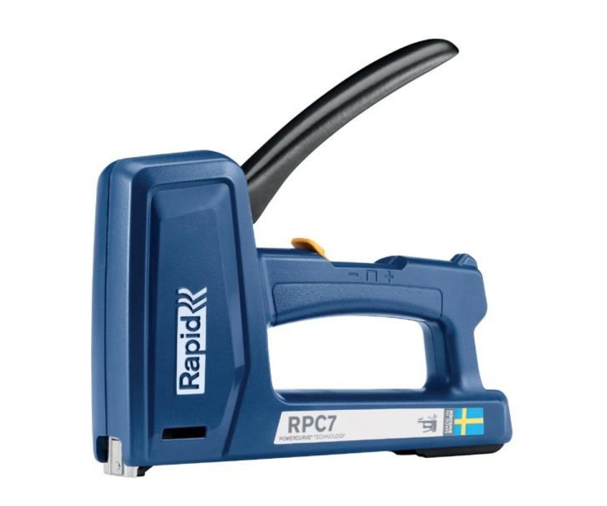 Weitere technische Eigenschaften · Klammerlänge/Typ bis: A/6-14 mm Typ 53, H/6-14 mm Typ 37, G/6-14 mm Typ 11, Kabelklammern 12–14mm Typ 7 und Typ 36, E/15 mm Typ J, Stifte 15 mm Typ 9 · Handtacker RPC7 · schlagfester ABS-Ku.RAPID · Für Feindrahtklammern Typ 53 und Typ 13 (6-14 mm), Flachdrahtklammern Typ 140 (6-14 mm), Kabelklammern Typ 7 und Typ 36 (12-14 mm), Nägel Typ 8 (15 mm) und Stifte Typ 9 (15 mm) ·