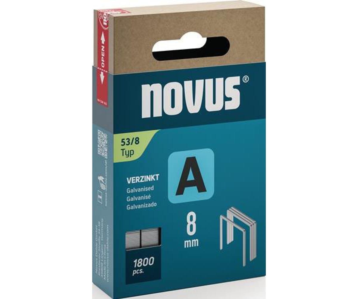 Feindrahtklammer A Typ 53 · Klammer-B.11,3mm 8mm · 0,75mm 1800 St.NOVUS · Zur Befestigung von: Papier, Folien, Stoffen, Teppichen, Dichtschienen, Heftrandmatten, Korkplatten Stahldraht · verzinkt VE = 1 Pack ·