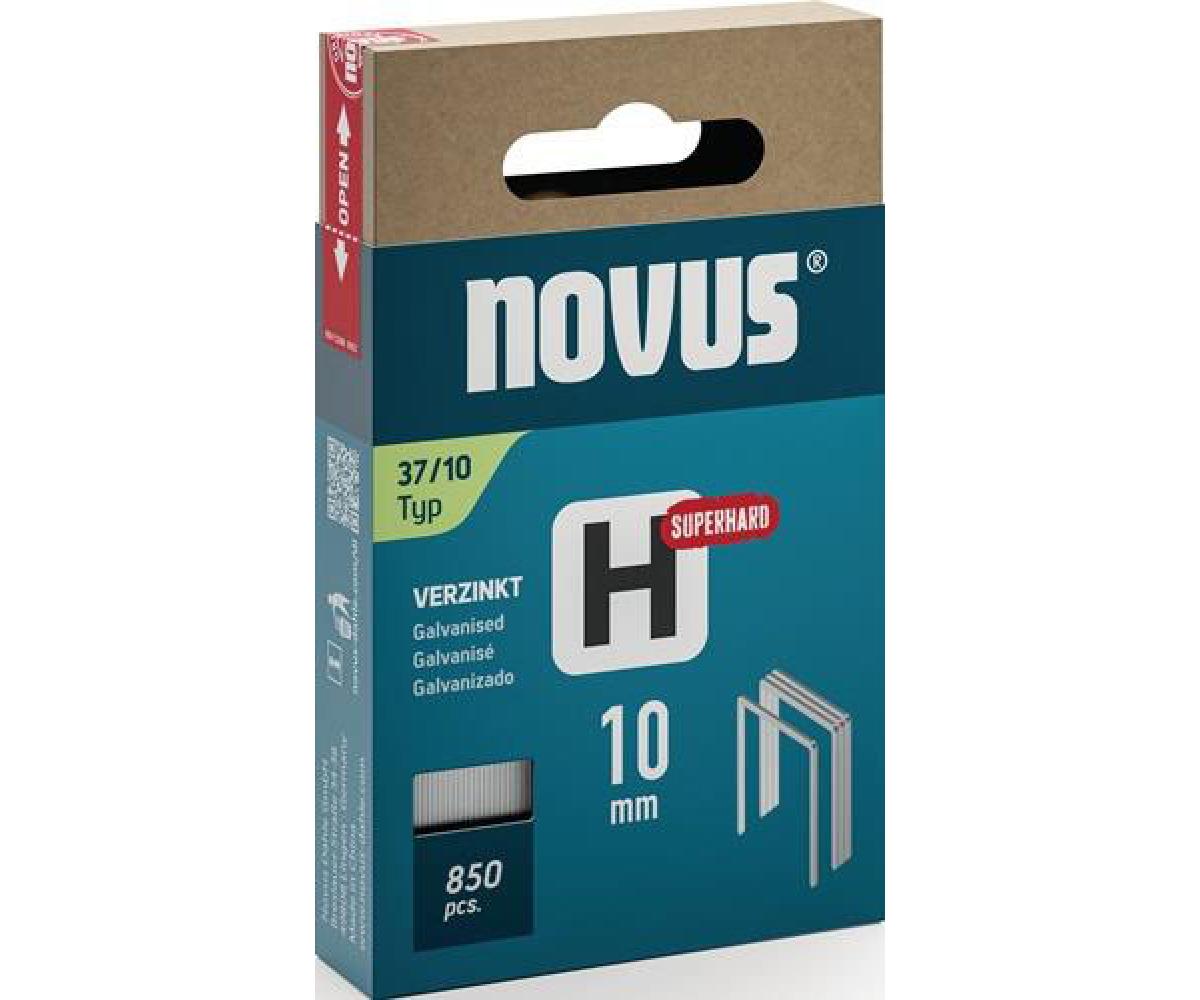 Feindrahtklammer H Typ 37 · Klammer-B.10,6mm 10mm · 0,75mm superhart 850 · Zur Befestigung von: Papier, Folien, Stoffen, Teppichen, Dichtschienen, Heftrandmatten, Korkplatten Stahldraht · verzinkt VE = 1 Pack ·
