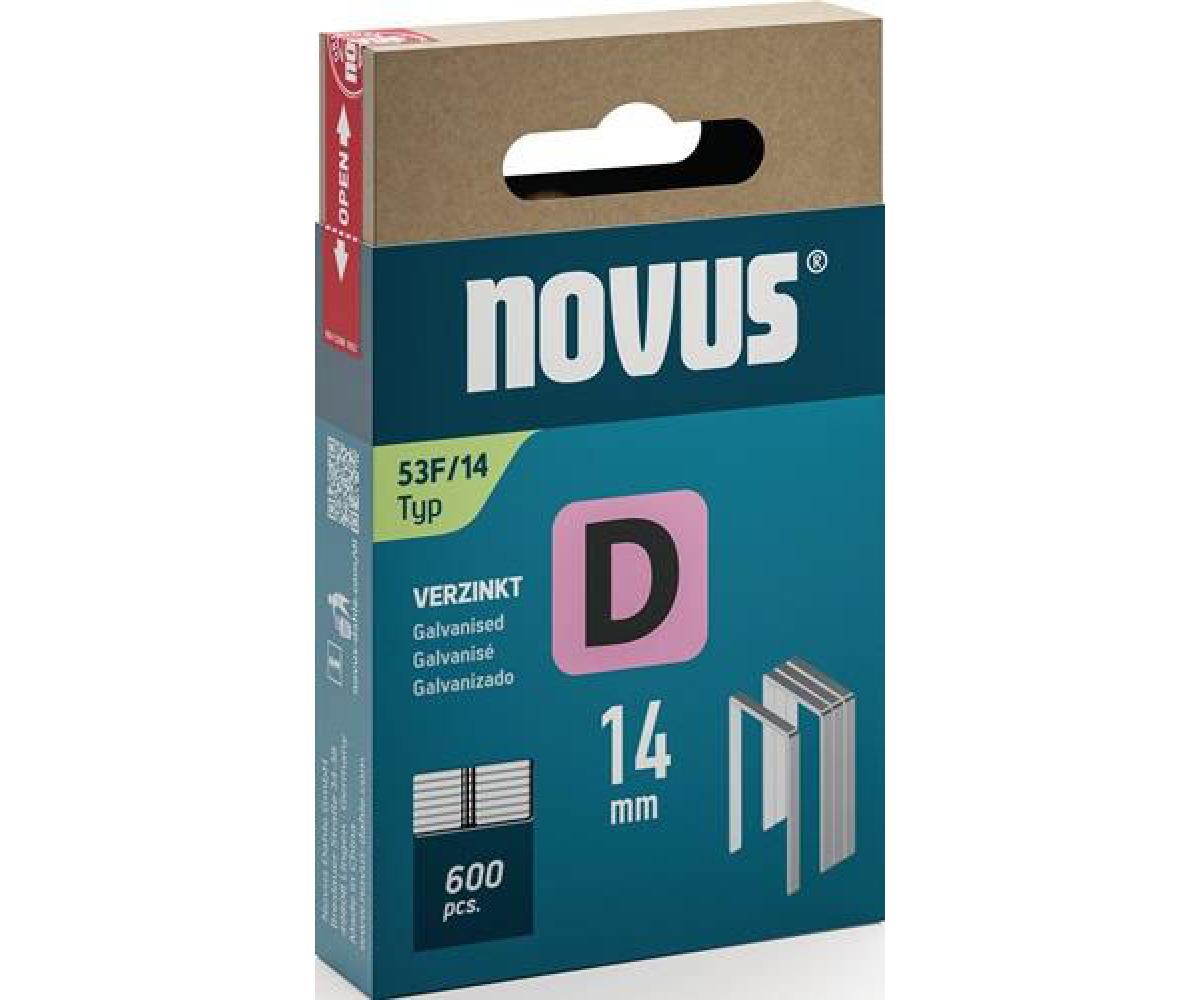 Flachdrahtklammer D Typ · 53 F B11,3xL14mm · Draht-B.1,25mm 600 · Zur Befestigung von: Papier, Folien, Heftrandmatten, weichen Kunststoffplatten, Profilholz und Paneelen mit Krallen, Teerpappe Stahldraht · verzinkt VE = 1 Pack ·