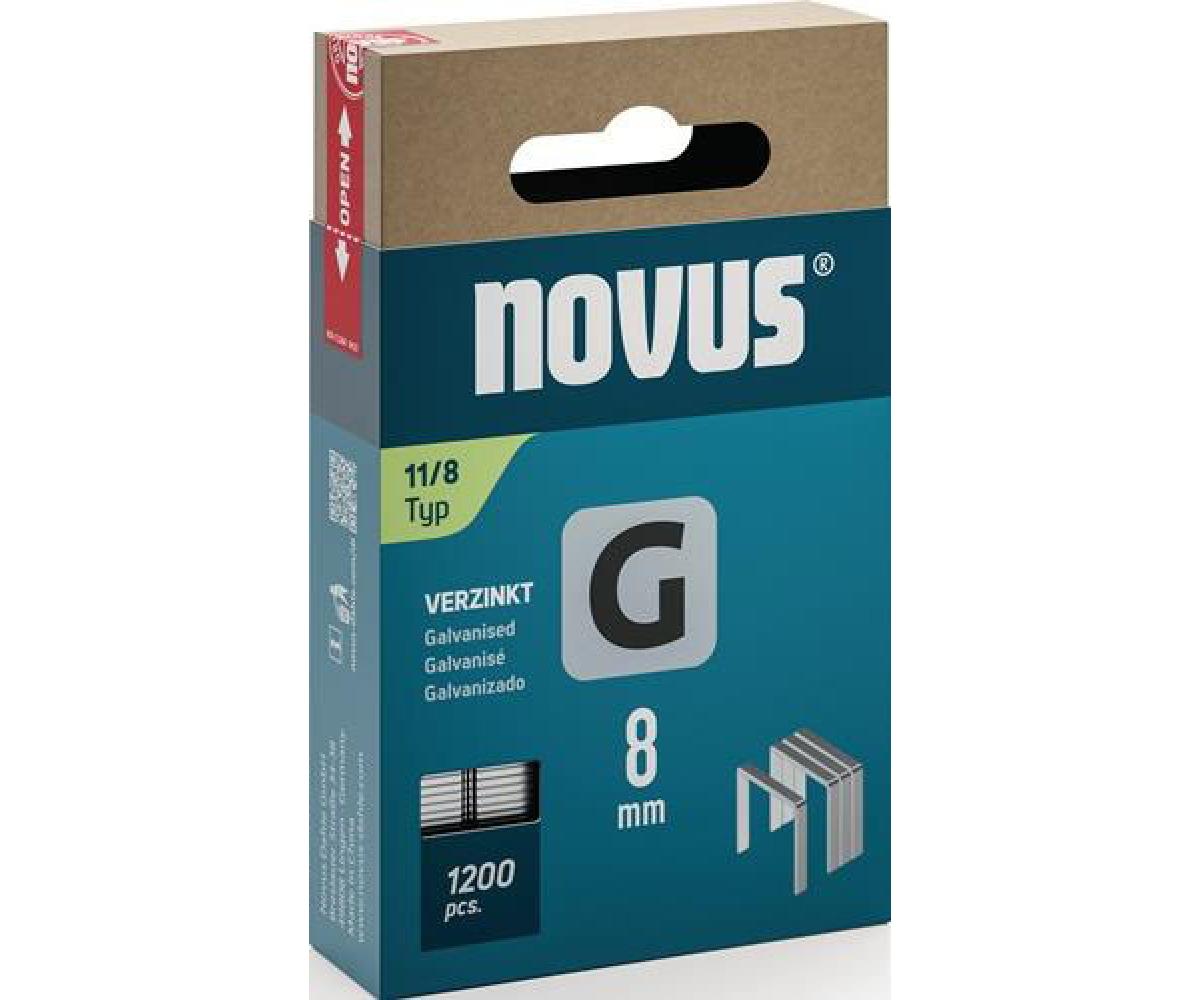 Flachdrahtklammer G Typ · 11 B10,6xL8mm · Draht-B.1,25mm 1200 · Zur Befestigung von: Papier, Folien, Heftrandmatten, weichen Kunststoffplatten, Profilholz und Paneelen mit Krallen, Teerpappe Stahldraht · verzinkt VE = 1 Pack ·