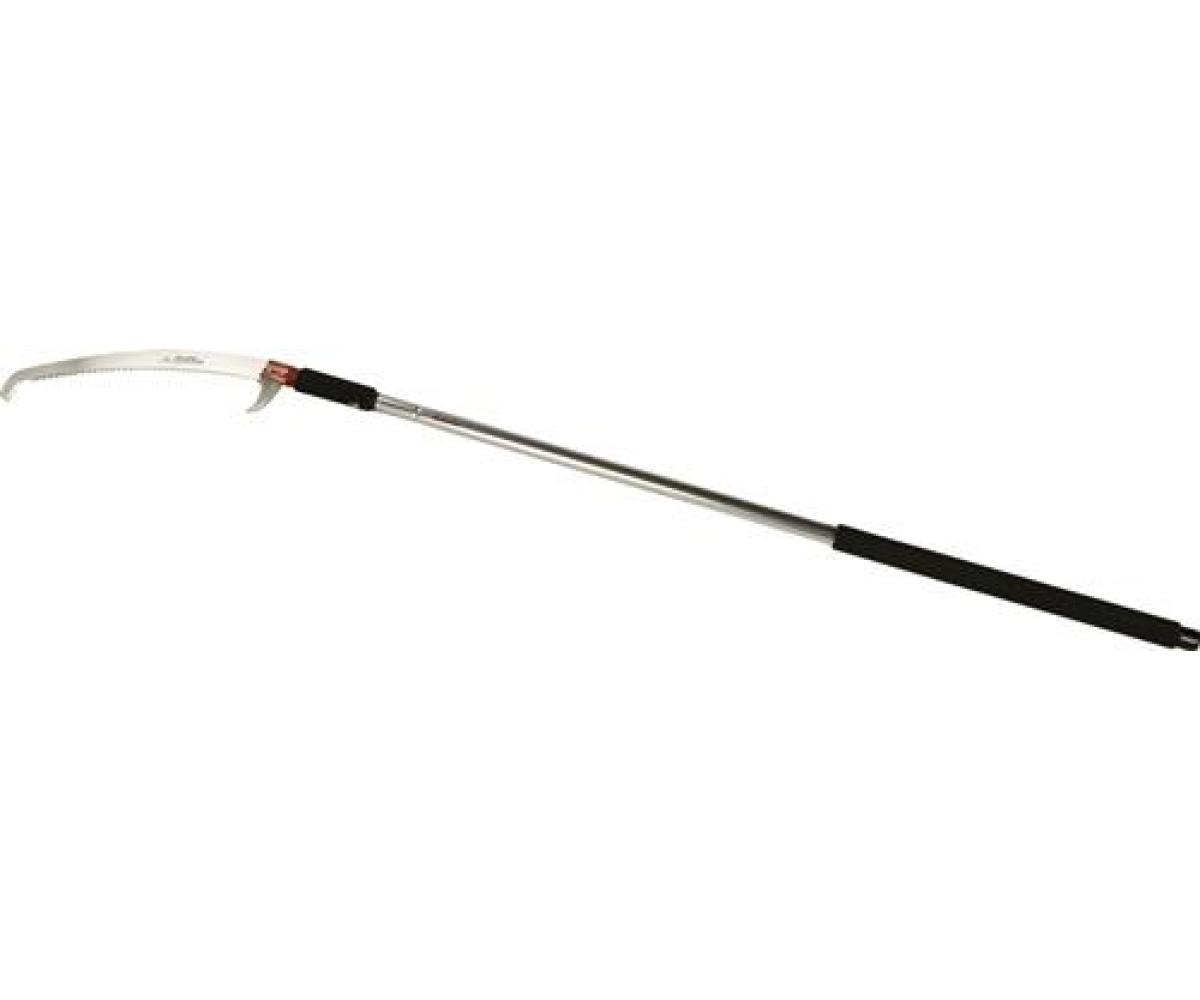 ausziehbare Stange von 1,6 m auf 3 m mit der Möglichkeit, sie durch einfaches Drehen des Griffs auf jede Zwischenlänge einzustellen · leichtgewichtige Astsäge mit japanischer Zahnung für einfache und saubere Schnitte