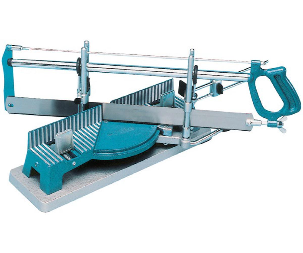 Sägetisch und Grundplatte aus Druckguss · 2 Material-Festspanner zum Fixieren des Schneidguts · Schnitttiefeneinsteller und Längenanschlag · automatische Winkeleinrastung bei 22,5/30/36/45/90° = 8-/6-/5-/4-eckig · stufenlose Winkeleinstellung manuell möglich, mit Universal-Sägeblatt für Holz, Leichtmetall und Kunststoff