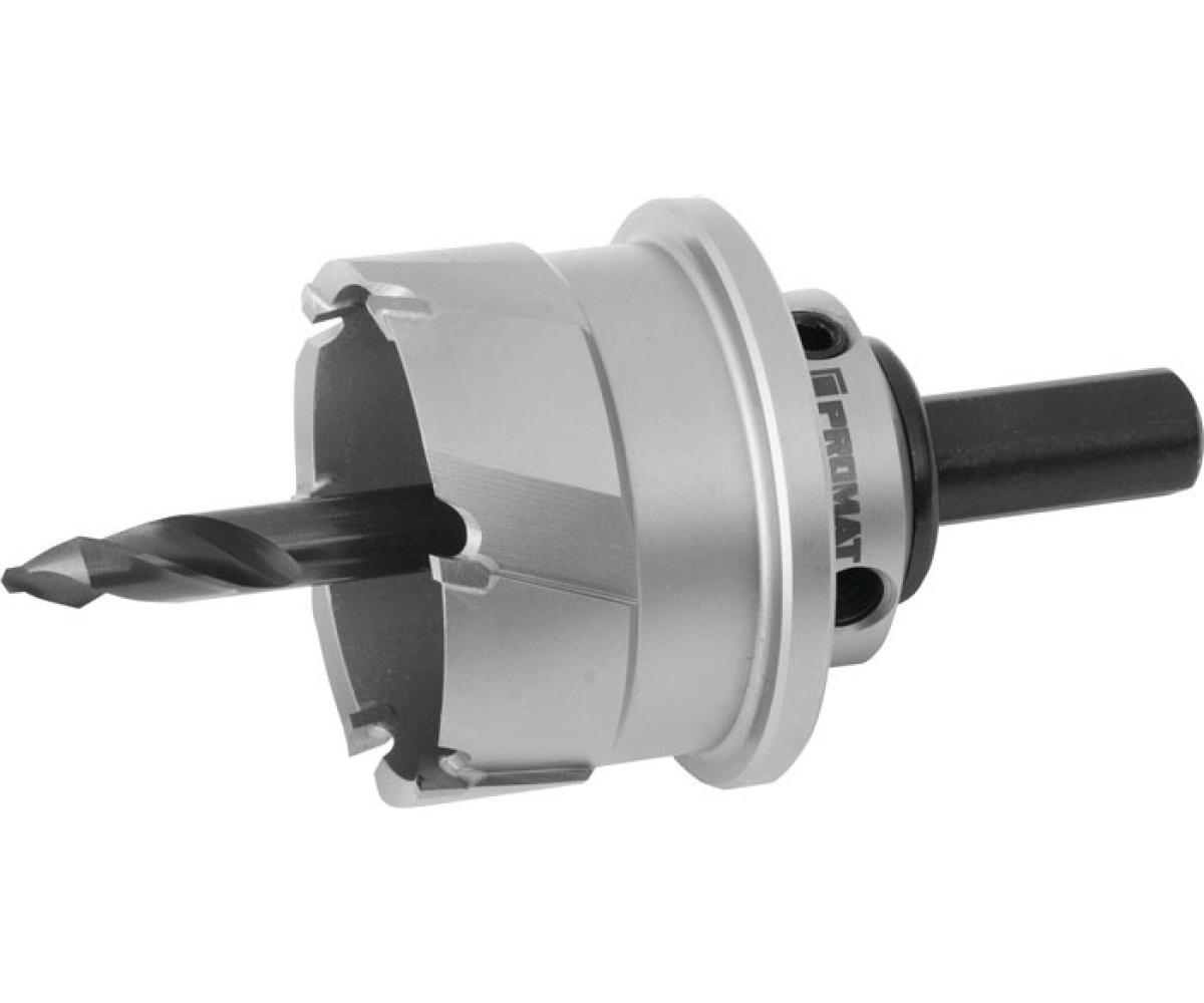 Mehrbereichsausführung · hartmetallbestückte Schneiden erlauben mehrmaliges Nachschleifen · auswechselbarer Zentrierbohrer · Auswurffeder für den Bohrkern · für unlegierte Stähle und Edelstahl · zum Sägen von Flachmaterial · Rohrmaterial · gewölbten Flächen · Überlappungsbohrungen sind möglich · Bohrkörper 30 mm · Schnitttiefe 20 mm, bei Handbohrmaschinen bis 6 mm