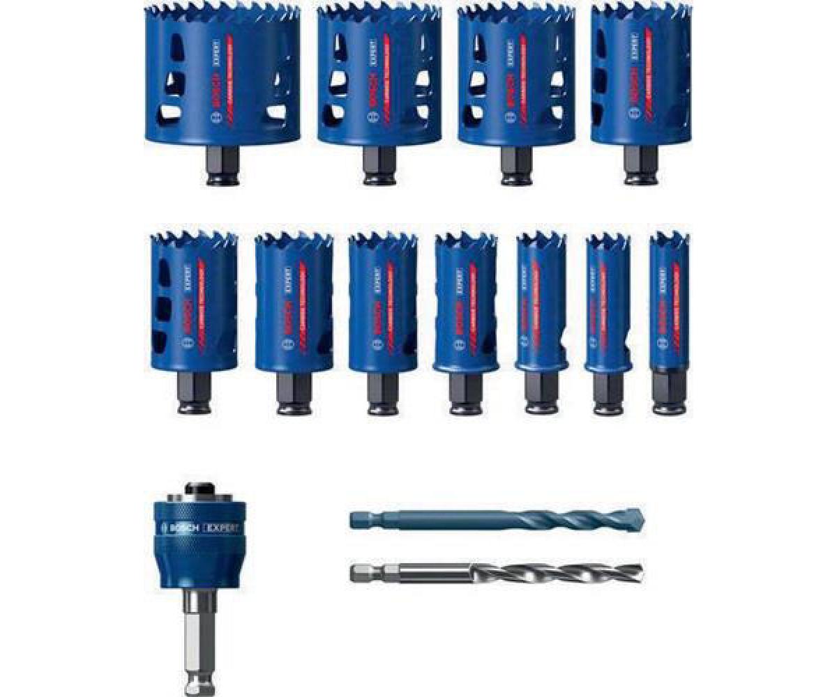 lange Lebensdauer beim Schneiden von Löchern in verschiedenen Materialen · mit Bosch Carbide Technology · perfekte Schnittform · ideal für schwere Aufgaben · einsatzbar in Holz, Metall, Edelstahl, Ziegelstein, weiche Fliesen und verstärkte Kunststoffe · zur Verwendung mit dem Power Change Plus-Schnellspann-Adapter