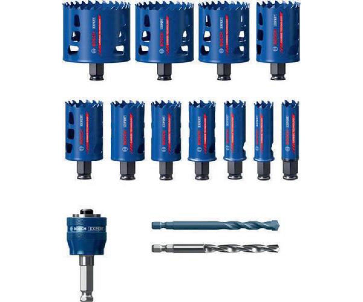 lange Lebensdauer beim Schneiden von Löchern in verschiedenen Materialen · mit Bosch Carbide Technology · perfekte Schnittform · ideal für schwere Aufgaben · einsatzbar in Holz, Metall, Edelstahl, Ziegelstein, weiche Fliesen und verstärkte Kunststoffe · zur Verwendung mit dem Power Change Plus-Schnellspann-Adapter
