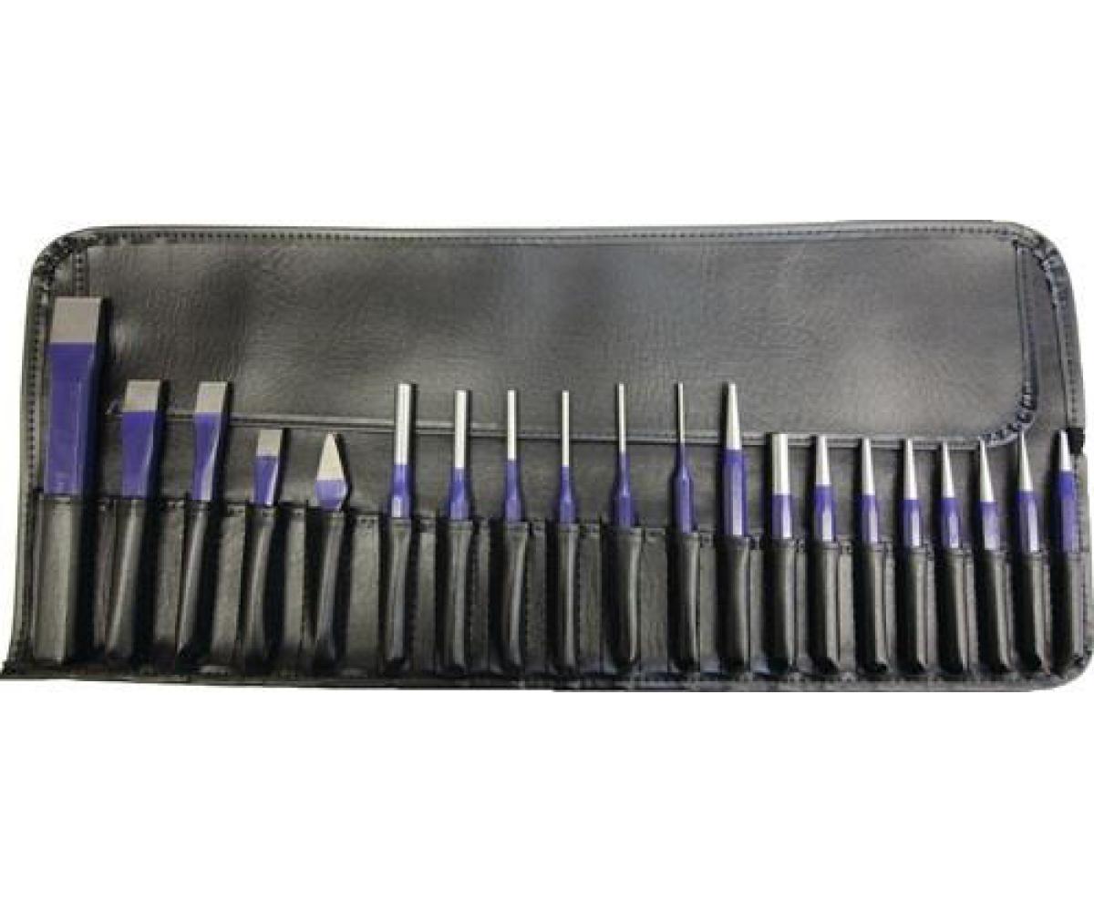 Inhalt: je 1 Flachmeißel 150 x 17 x 11 mm, 200 x 23 x 13 mm, 125 x 10 mm, 150 x 12 mm Kreuzmeißel 125 x 10 mm je 1 Splintentreiber 150 x 10 x 3 mm, 150 x 10 x 4 mm, 150 x 10 x 5 mm, 150 x 10 x 6 mm, 150 x 12 x 8 mm, 150 x 12 x 10 mm je 1 Körner 120 x 10 mm, 150 x 12 mm je 1 Durchtreiber 120 x 10 x 1 mm, 120 x 10 x 2 mm, 120 x 10 x 3 mm, 120 x 10 x 4 mm, 120 x 10 x 5 mm, 120 x 12 x 6 mm, 120 x 12 x 8 mm Lieferung in RolltascheTechnische Daten