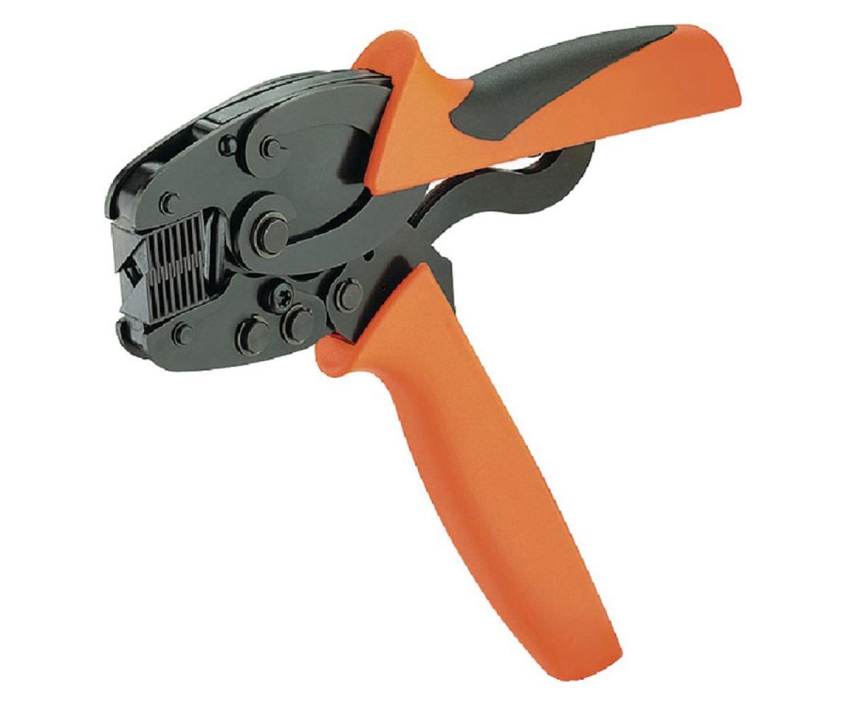 für Aderendhülsen (nach DIN 46228 T. 1 und 4) mit und ohne Kunststoffkragen von 0,5 - 6 mm² · Zwangssperre garantiert Qualitätscrimp · Entriegelungsmöglichkeit bei eventueller Fehlbedienung · nur ein Gesenk für den gesamten Querschnittsbereich · Aderendhülseneinführung von vorn · kurzer Hebelweg mit ergonomisch geformten Griffen, für ermüdungsarmes Arbeiten · Crimp: Vierkant