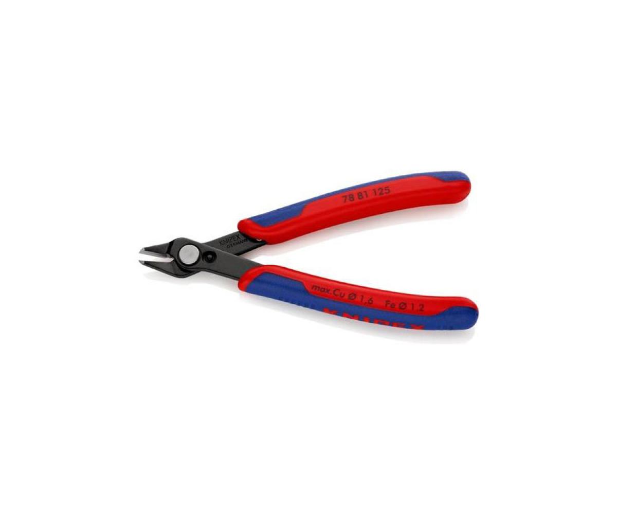 Weitere technische Eigenschaften · A: 13,5mm · D: 7,5mm · Feder: mit Öffnungsfeder · Griff: Mehrkomponenten-Hüllen · Material: Spezialwerkzeugstahl · B: 9mm · Norm: DIN ISO 9654 · Elektronik-Seitenschneide · r Super-Knips® L.125mm · Form 8 Facette ja,sehr ·