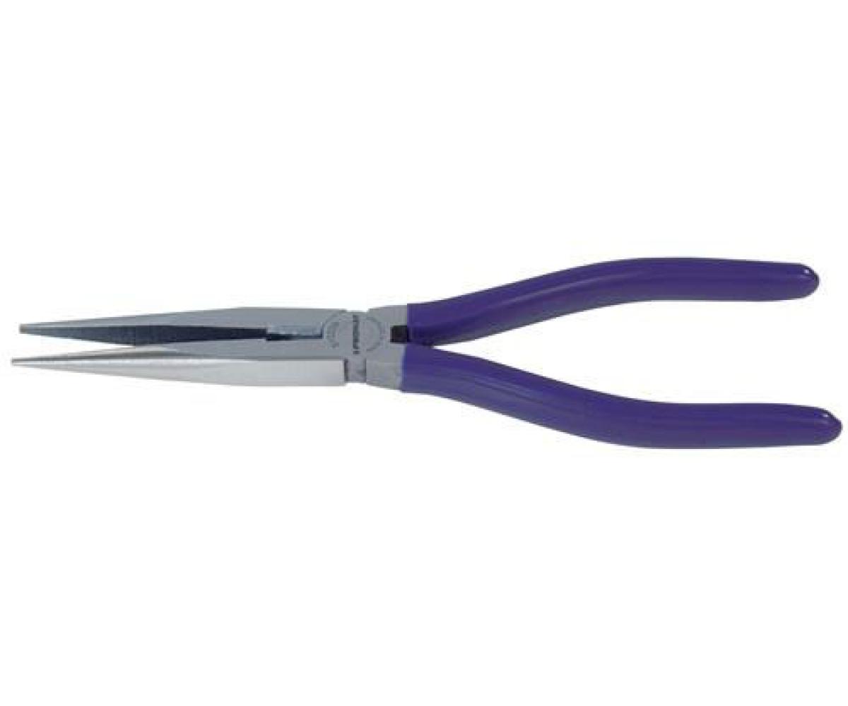mit Schneide (Storchenschnabelzange) · gerade, flach-rund, lange, spitz zulaufende Backen, mit Brennerloch · Greifflächen gezahnt · Schneiden zusätzlich induktiv gehärtet, Schneidenhärte ca. 60 HRC · Spezial-Werkzeugstahl, ölgehärtet und angelassen Kopf poliert