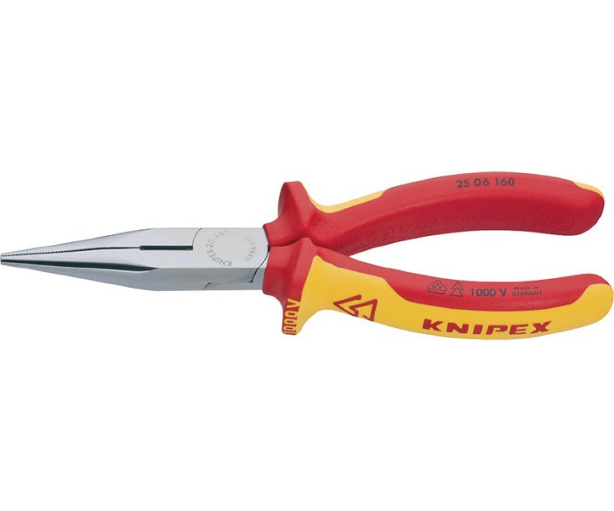 Weitere technische Eigenschaften · Spitzenstärke: 2,5mm · Griff: Mehrkomponenten-Hüllen · Backenausführung: flach/rund · Zange: verchromt · Backenlänge: 50mm · Form: 0 · Spitzenbreite: 3mm · Flachrundzange DIN ISO · 5745 L.160mm flach/rund · ger.Mehrkomp.-Hülle VDE ·