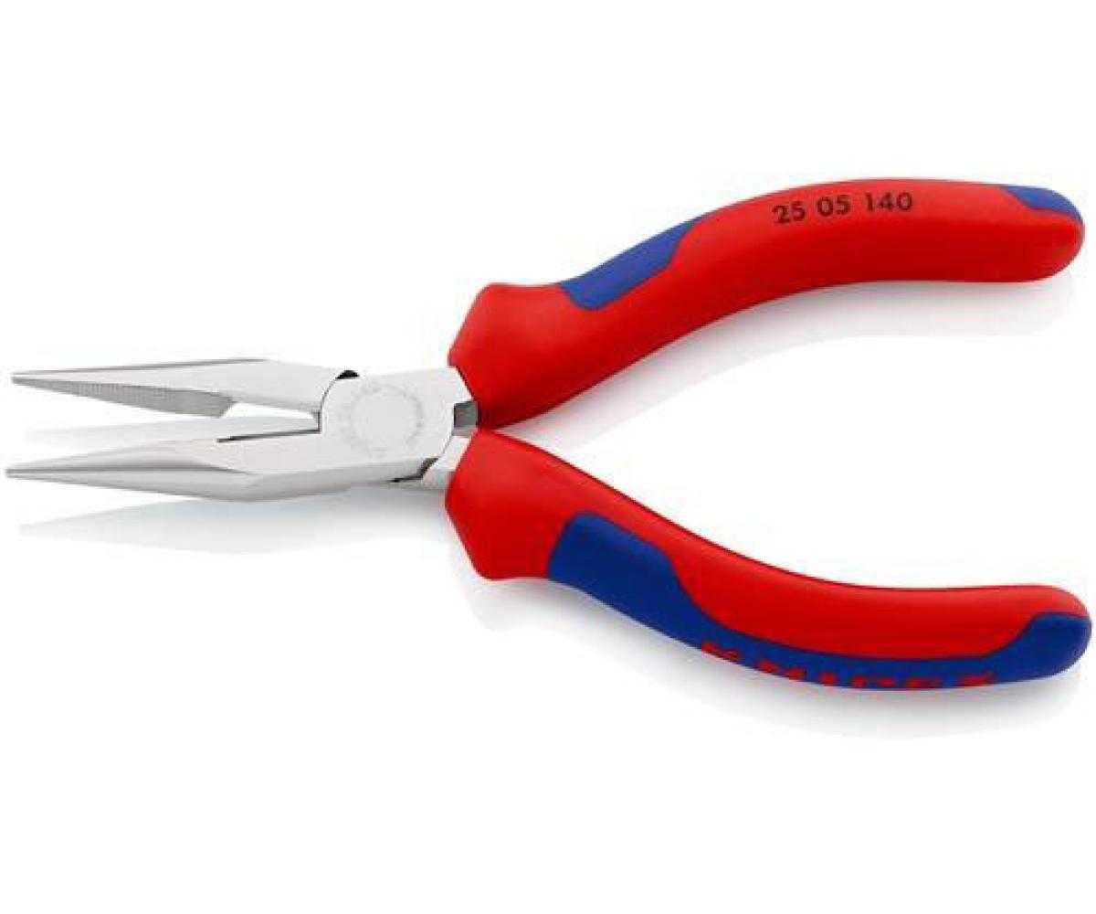 Weitere technische Eigenschaften · Spitzenstärke: 2mm · Griff: Mehrkomponenten-Hüllen · Backenausführung: flach/rund · Zange: verchromt · Backenlänge: 42mm · Form: 0 · Norm: DIN ISO 5745 · Spitzenbreite: 2,5mm · Flachrundzange L.140mm · flach/rund · ger.Mehrkomp.-Hüllen ·