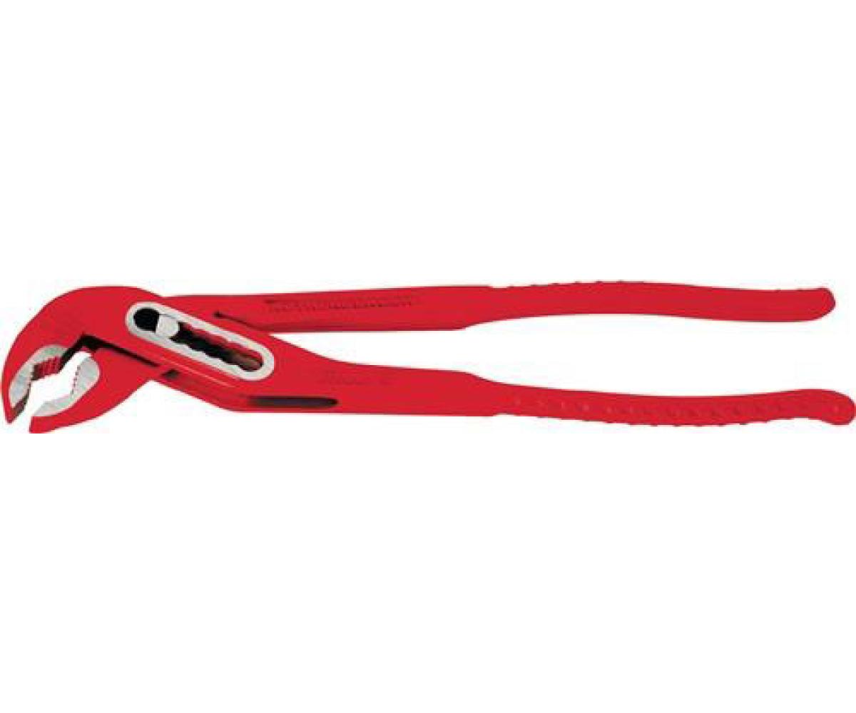 entsprechend DIN 5231 D · CV-Stahl · gesenkgeschmiedet · mit durchgestrecktem Gewerbe · vergütet · Kopf und Gewerbe geschliffen · ideal für schwer zugängliche Stellen durch langen, schlanken Zangenkopf · mit günstigem Eckmaß · optimale Griffigkeit zum sicheren Halten von Rohren, Flachmaterial sowie für Vierkant- und Sechskant-Verschraubungen · lange Lebensdauer durch induktiv gehärtete Verzahnung · variables Arbeiten: 7-fach verstellbar · rutschfest auch an glatten Rohren · Arbeitssicherheit durch Quetsch- und Klemmschutz
