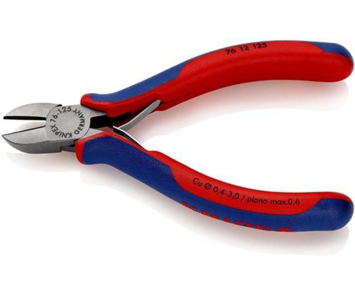 für Elektromechaniker · für feinste Arbeiten an elektronischen Bauteilen · Schneiden zusätzlich induktiv gehärtet, Schneidenhärte ca. 63 HRC · Vanadin-Elektrostahl, geschmiedet, mehrstufig ölgehärtet Zange schwarz atramentiert · Kopf poliert