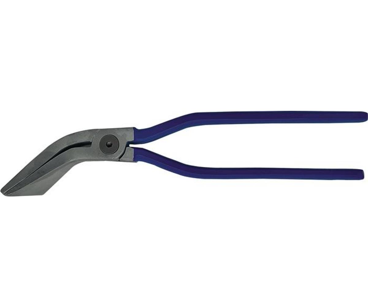 ultraleichte, aus Aluminium (EN AW 7075 (AlZnMgCu 1,5) geschmiedete Falzzange · nicht verwindbar · pulverbeschichteter Griff mit leichter Struktur für optimalen Halt - auch mit verschmutzen Händen ·geeignet zum Biegen von Alu-, Zink- und beschichteten Blechen bis zu 1,2 mm Stärke · bedingt geeignet für Edelstahl und Uginox · Gewerbe: aufgelegt, verschraubt