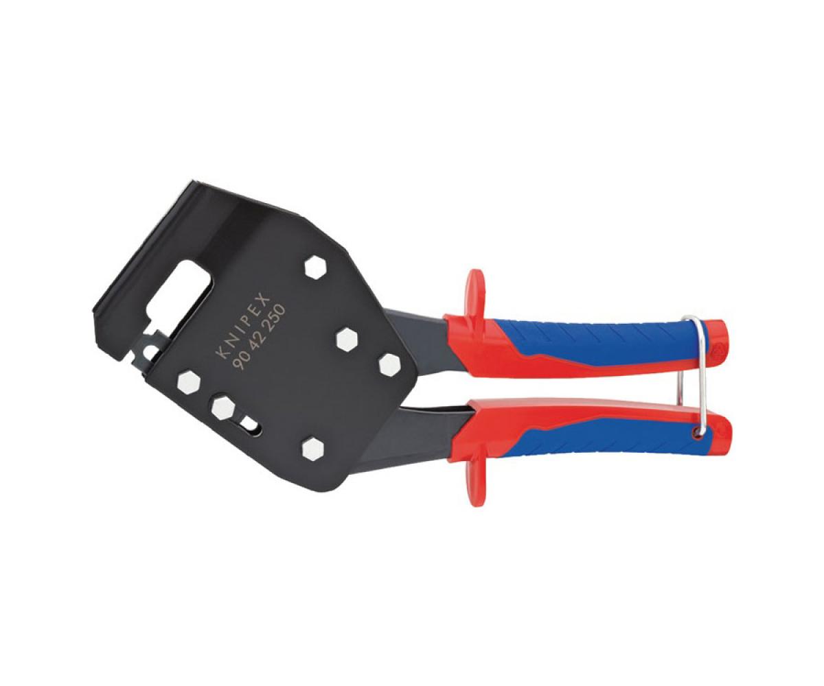 für Einhandbedienung · für U- und C-Profile mit max. 1,2 mm Blechstärke (2 x 0,6 mm) · minimaler Kraftaufwand durch optimale Hebelübersetzung · Zangenkörper: Spezial-Werkzeugstahl, gewalzt, ölgehärtet Zange brüniert · mit Mehrkomponenten-Hüllen