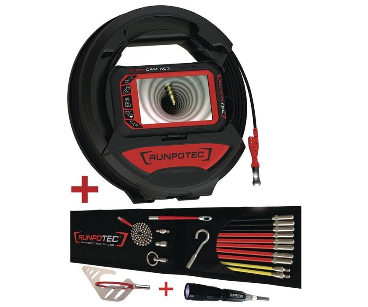 inkl. RUNPOSTICKS Comfort · Rohrinspektion ab Innen-Ø 14 mm · Inspektion von Lüftungsrohre, Drainagerohre, Abwasserrohre usw. · für Hohlrauminspektion und abgehängte Decken · Kamerakopf mit Front- und Seitenkamera inkl. 8 x LED-Lichter – dimmbar · RC3 Inspektionskamera über WLAN u. RUNPOCAM App bedienbar (optional) · Beweissicherung, Bildarchivierung, Dokumentation von Aufnahmen · Schutzklasse IP 67 (Kamerakopf und Kabel) · Akkulaufzeit 3 Stunden · Box mit Dreh- und Haltegriff · Zubehörfach (8-teilig Enthaltenes Zubehör: 1 x RC3 Inspektionskamera (Box inkl. Monitormodul, Kabel inkl. Kamerakopf 15 m), 1 x Gewindeaufsatz RC2/RC3, Aufsatz biegsam, Glasfaserstab Ø 3 mm - 1 m, Micro Memory Card 8 GB, Verbindungsgewinde, Magnet, Fanghaken, USB-Ladekabel 1,5 m (Stecker USB/USB-C) · RUNPOSTICKS Comfort Set: 5 x RUNPOSTICKS Rot (hart) Ø 7,5 mm, 3 x RUNPOSTICKS Schwarz (mittel) Ø 5,5 mm, 2 x RUNPOSTICKS Gelb (weich) Ø 4,5 mm, 1 x RG7 RUNPOGLEITER, 1 x extra starker Magnet, 1 x Kugelkette, 1 x Öse mit Ring, 1 x Fanghaken, 1 x Verbindungsgewinde, 1 x Aufbewahrungstasche, 1 x Spezialgleithaken, 1 x stoßfeste LED-Lampe
