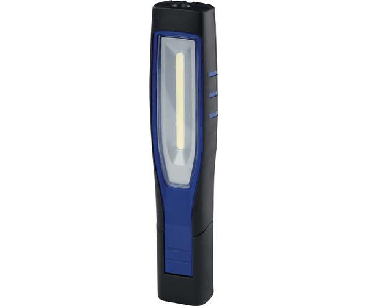 10 W COB LED als Hauptlicht und 4 W SMD LED an der Kopfseite · Hauptlicht mit 3 Leuchtstufen (250/500/1000 lm) · Kopflicht 200 lm · 180° schwenkbarer Leuchtenfuß mit Magnet · zusätzliche Magnete auf der Rückseite · 2 ausklappbare, drehbare Haken · Ladestandsanzeige